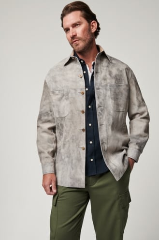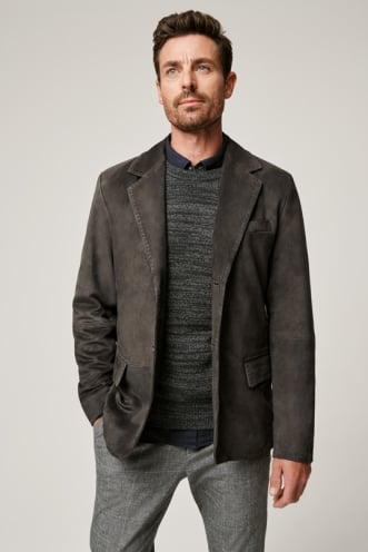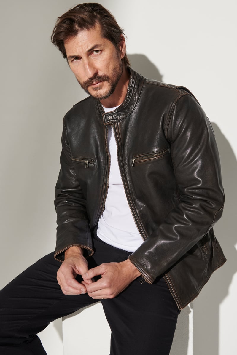 If your style is more laid-back, rugged, or rooted in Americana, a handsome leather barn or field jacket might suit you. The barn jacket was originally designed for hardworking farmers but has evolved to be an urban staple. Typically loose fitting, a classic barn jacket is hip-length, has a zip or button front, and clean lines. The field jacket has U.S. military origins and a similar shape—but with four front flap pockets, a front storm placket, and an adjustable waist drawstring inside. If you're one who appreciates pockets, the field has plenty of space for all the essentials.
