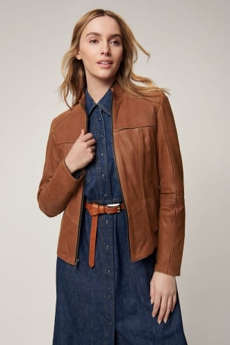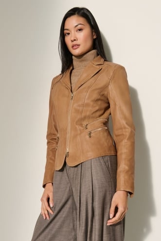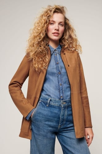Looking for a relaxed-fit jacket with an adventurous spirit? Meet the bomber. A vintage icon, the bomber (also known as an aviator, or flight jacket) has its origins in the rugged jackets early American pilots wore to stay warm in high altitudes. Bomber jackets have since made their way to city streets, where you'll find them in an array of shearling and leather styles, with or without classic details like a shearling collar, shoulder epaulets, and adjustable buckles. Go retro and pair your bomber with jeans, a T-shirt, and aviator glasses, or elevate your look by wearing the jacket with an elegant dress or trousers.